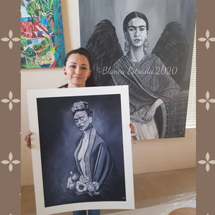 Note: This piece and the Frida Dark Angel, were my first huge oil portraits. I felt that these two art pieces became very personal to me and I could feel Frida's spirit the entire time. I drank with them as I painted, talked to them, and just really enjoyed every moment.